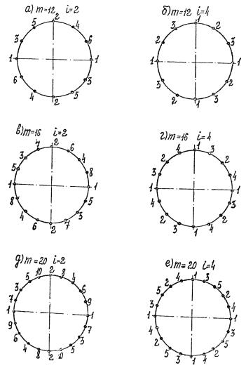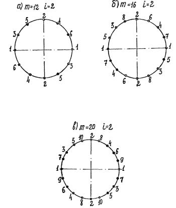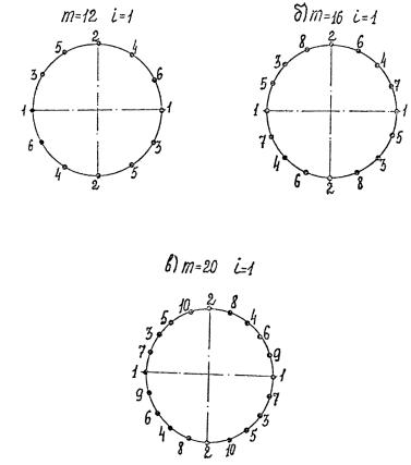 Черт. 2 ПРИЛОЖЕНИЕ 5Рекомендуемое СХЕМЫ ПЕРЕСТАНОВКИ КЛЮЧА ПРИ МОМЕНТНОЙ ЗАТЯЖКЕ ШПИЛЕКЗатяжка одним моментным ключом 1 - 1 - номер группы шпилек Черт. 3 Затяжка двумя ключами Черт. 4 ПРИЛОЖЕНИЕ 6Обязательное КОЭФФИЦИЕНТ УДЕЛЬНОЙ ОСЕВОЙ ПОДАТЛИВОСТИ СТЕРЖНЯ ШПИЛЬКИТаблица 2