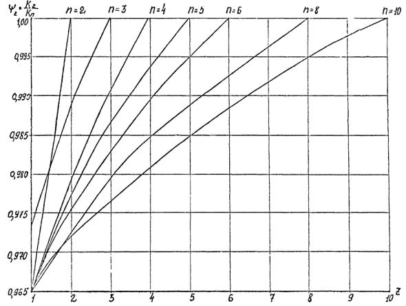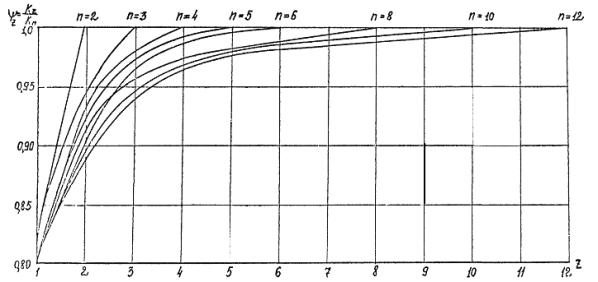 ПРИЛОЖЕНИЕ 10Обязательное ЗАВИСИМОСТЬ КОЭФФИЦИЕНТА Yz ОТ КОЛИЧЕСТВА ГРУПП И ПОРЯДКОВОГО НОМЕРА ГРУППЫ ДЛЯ ФЛАНЦЕВОГО СОЕДИНЕНИЯ С ДВУХКОНУСНЫМ КОЛЬЦОМ