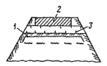 где Q - расход воды, м3; t - время истечения, с; I - градиент фильтрации; F - площадь сечения образцов, см2; Dt - температурная поправка (аналогично испытаниям грунтов). Как правило, следует пользоваться данными организаций и институтов по водопроницаемости СМ данного вида и табличными значениями (приложение 5). 2.3.4. Стойкость CM к агрессивным воздействиям определяет срок их службы и оценивается специальными испытаниями, проводимыми предприятиями-поставщиками или разработчиками СМ. Испытания заключаются в воздействии на образцы СМ водной среды, растворов химически активных веществ реально возможных концентраций (рН 2 - 11), биологических и температурных (в диапазоне -30 - 40°С) факторов с оценкой изменения механических характеристик образцов. Испытания проводятся на основе ГОСТ 9.022-74 «Ткани из натуральных, искусственных и синтетических волокон, кожа искусственная и материалы пленочные. Методы испытаний на старение в природных и лабораторных условиях», ГОСТ 9.060-75 «Ткани. Метод лабораторных испытаний на устойчивость к микробиологическому разрушению», ГОСТ 12020-72 «Пластмассы. Метод определения стойки к действию химических сред». При отсутствии данных по стойкости СМ дорожные организации должны получить соответствующую информацию в специализированных организациях-разработчиках СМ. Стойкость СМ к агрессивным воздействиям в целом или к воздействию отдельных факторов можно не оценивать при их изготовлении из чисто синтетического сырья и требуемом сроке службы не более одного года (с учетом п. 2.1.2); при сроке службы более года тех же материалов, если стойкость к воздействию отдельных факторов составляющего сырья известна; при незначительном воздействии биологических, химических и температурных факторов. Стойкость СМ к агрессивным воздействиям должна оцениваться по всех случаях, если в состав сырья входят несинтетические компоненты в любом количестве, а также если синтетические материалы упрочняются химическим способом. 2.3.5. Сопротивление сдвигу СМ на контакте с окружающим грунтом определяют во всех случаях, когда в результате внешних воздействий возможен сдвиг СМ и контактирующего с ним грунта относительно друг друга, например при армировании откосов, в соответствии с приложением 1Д. В отдельных случаях для повышения сопротивления сдвигу на контакте в СМ целесообразно создавать отверстия диаметром 1,5 - 4 см на расстоянии до 1 - 3 м друг от друга 1. 1 А. с. № 585249 (СССР). 2.3.6. Другие из названных в п. 2.2. характеристик СМ определяют следующим образом: поверхностную плотность (массу 1 м2) -взвешиванием образца размером 500´500 мм с увеличением полученного результата в 4 раза. Точность взвешивания 5 гс; толщину - замером ее по каждой из сторон пригруженного нагрузкой 1 Н образца размером 50´200 мм для нетканых и замером ее в трех точках на расстоянии не менее 20 мм от кромки полотна для других материалов с вычислением среднего значения. Точность замеров 0,05 мм. Замеры выполняют толщиномерами, микрометрами. (ГОСТ 6507-78). В условиях строительных организаций допускается применение штангенциркуля; ширину - измерением металлической линейкой (ГОСТ 427-75) с точностью до 5 см. 3. ПРИМЕНЕНИЕ СИНТЕТИЧЕСКИХ МАТЕРИАЛОВ ДЛЯ УСИЛЕНИЯ ЗЕМЛЯНОГО ПОЛОТНА И НИЖНИХ СЛОЕВ ДОРОЖНОЙ ОДЕЖДЫ3.1. Конструктивные решения3.1.1. Принимаемые решения по введению в дорожную конструкцию прос