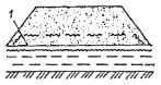 где f - см. п. 3.2.2, m1, H - соответственно заложение откоса и высота насыпи, S - осадка насыпи, определяемая по действующим нормативным документам; e0 - общее относительное удлинение СМ при разрыве (назначается после испытаний по методике приложения 1А или по паспортным данным). В случае применения жестких СМ с e0<30% для армирования основании (п. 3.1.12) такую оценку выполняют исходя из условий восприятия ими всего усилия, соответствующего растягивающим напряжениям sх в нижней части насыпи