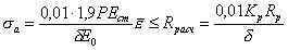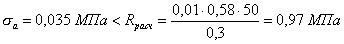 где Rр, d - см. п. 1 таблицы приложения 5; Кp = К×n/m = 0,29×0,7/1,2 = 0,17 (n, m см. п. 3.2.5, К = 0,29 из табл. 1 приложения 2); так как sа = 0,035 МПа< Rрасч = 0,29 МПа, условие (3.4) проверки прочности на период эксплуатации соблюдено; проверяют соблюдение условия (3.4) в период строительств, поскольку прослойку из CM устраивают непосредственно под покрытием из щебня, значения sа в период строительства и эксплуатации равны, а условие (3.4) записывается в виде