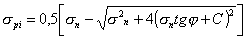 где tпрi - предельное значение касательного напряжения при данном sni. При известных фактических прочностных характеристиках j и С значение spi для данного грунта может быть рассчитано по формуле