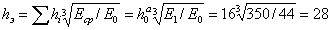 где Е0=44 МПа (из номограммы рис. 4 при Е0/Е1 = Егр/Е2 = 0,24; h/D = h2/D = 0,54; Еобщ/Е1 = Е0/Е2 = 0;44; E0 = 0,44E2; приводят конструкцию к двухслойной: СМ расположен непосредственно под покрытием, поэтому параметры верхнего слоя Еср/Е1 = 350 МПа, Н = h1 = 23 см, нижнего слоя Е0 = 44 МПа; определяют Еаобщ = Еобщ/a2 = 112/0,930 = 120 МПа, где Еобщ = 112 МПа, a2 равно 0,930 по табл. 3 приложения 2 при Н/D = 0,62, E0 = 44 МПа, Еср/Е0 = 350/44=8; определяют значение условий толщины слоя h¢i (из номограммы рис. 4, принимая Еобщ/Е1 - Еаобщ/Е1 = 0,34; Е0/Е1 - Е0/2 = 0,12; h¢1D = h¢iD = 0,80; h¢i = 0,80D = 30 см); определяют новое значение толщины слоя щебня при устройстве в его основании прослойки из СМ [выражение (3.3)]: