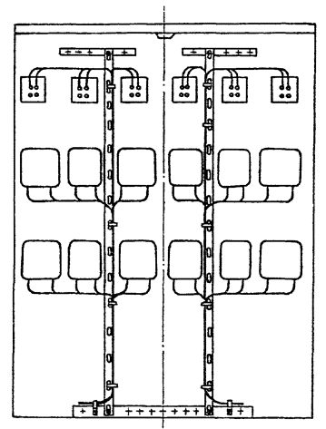 Срок введения установлен с 01.01.91 Настоящее пособие содержит основные технические требования к монтажу электрических проводов в щитах, пультах и стативах (в дальнейшем щитах), а также правила приемки и методы контроля смонтированных электрических проводок. Пособие предназначено для применения на промышленных предприятиях, изготавливающих щиты по ОСТ 36.13-90. При разработке данного пособия учтен опыт проектирования и изготовления щитов по ОСТ 36.13-76. 1. ТЕХНИЧЕСКИЕ ТРЕБОВАНИЯ1.1. Требования к исходным материаламНе допускается применение проводов с полиэтиленовой изоляцией. Рекомендуемые марки и сечения проводов указаны в приложении 1. В случае технической необходимости предприятие-изготовитель может применять другие марки проводов, не ухудшающие качество щита. 1.1.2. Климатическое исполнение проводов должно быть не ниже климатического исполнения щита. 1.1.4. В качестве основных припоев следует применять: в. щитах исполнения УХЛ3.1 (УХЛ4) по ГОСТ 15150-69 припой по ГОСТ 21930-76 ПОС 40 для пайки концов проводов и ПОС 61 для пайки выводов полупроводниковых приборов; в щитах исполнения ТВ 304 (Т4) - олово по ГОСТ 860-75 для всех паяных соединений. Допускается применение других припоев, не снижающих качество и надежность работы щитов в нормируемых условиях. Запрещается пользоваться кислотными флюсами. 1.1.6. Наконечники для оконцевания жил проводов должны иметь металлическое покрытие: для щитов исполнения УХЛ3.1 (УХЛ4) по ГОСТ 15150-69 сплавами олово-свинец по ГОСТ 21930-76; для щитов исполнения ТВ 304 (Т4) до ГОСТ 15150-69 - оловом по ГОСТ 860-75. Рекомендуемые для применения наконечники указаны в приложении 3. 1.2. Требования к установке приборов, аппаратов и навесных электрорадиоэлементов. Требования к выводам установленных приборов и аппаратов1.2.1. Приборы, аппараты и установочные изделия (в дальнейшем устройства), а также навесные электрорадиоэлементы (в дальнейшем элементы), поставляемые со щитами, должны быть установлены в щите, как правило, до начала монтажа в нем электрических проводок. 1.2.2. Устройства должны быть закреплены внутри щита, как правило, на типовых конструкциях сборника СТК 3-19-?0 по типовым монтажным чертежам сборника СТМ 3-19-90 "Установка аппаратуры внутри щитов по ОСТ 36.13-90". Детали для монтажа устройств и проводок должны иметь защитное металлическое покрытие. При необходимости установки устройства, отсутствующего в сборнике СТМ 3-19-90, его закрепляют по ТМ устройства аналогичной конструкции или по индивидуальному чертежу, который должен входить в состав проектной документации на щит. 1.2.3. При установке устройств в щитах, между открытыми токоведущими частями разных фаз (полярности) рядом стоящих устройств, а также между открытыми токоведущими частями устройств и неизолированными металлическими частями щитов должны быть обеспечены расстояния не менее: 20 мм - по поверхности изоляции и 12 мм - по воздуху. 1.2.4. Положение устройств в щите должно соответствовать требованиям технических условий или инструкций по эксплуатации на эти устройства. 1.2.5. Устройства и элементы должны устанавливаться в щитах так, чтобы не затруднять монтаж соседних устройств или элементов, также не ухудшать условий их эксплуатации (снятие крышек, доступ к органам регулирования и подстройки и т.д.). 1.2.6. Угольники УЗ или скобы СЗ, на которых должны быть установлены устройства с задним п