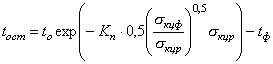Примечание. Параметры таблицы определяются на основе имеющихся экспериментальных данных путем их аппроксимации и в соответствии с критерием подобия процессов деформирования и разрушения металлов одной группы и постоянно уточняются при получении новых данных. Пример расчета остаточного срока службы по изменению ударной вязкости металла приведен в приложении Е. Остаточный срок службы tост с учетом сплошной коррозии и действующих напряжений имеет вид где to - максимальное время до разрушения ненапряженного элемента конструкции (газопровода) в годах, определяемое по формуле sкцф - фактически действующие кольцевые напряжения, МПа, с учетом утонения стенки трубы при сплошной коррозии вычисляются по формуле (здесь D - наружный диаметр газопровода, мм); sкцо - начальное кольцевое напряжение, МПа, определяемое по формуле (здесь hо - толщина стенки трубы в начале эксплуатации, мм); Vк - средняя скорость коррозии, мм/год, определяемая по формуле (здесь hT - толщина стенки трубы в зоне наибольших повреждений (дефекта), мм); sкцp - допускаемое рабочее кольцевое напряжение, МПа; Кп - константа рабочей среды, МПа-1, определяемая по формуле