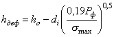 (здесь V - мольный объем стали, равный 7,0 см3/моль; R - универсальная газовая постоянная, равная 8,31 Дж/(моль×К); Т - температура Тф (К), при 20 °С = 293 К). Пример расчета остаточного срока службы при действии фронтальной коррозии приведен в приложении Е. Повреждения труб в виде коррозионных язв (питтингов) приводят к неравномерному распределению напряжений в стенке газопровода, увеличивая их в местах наиболее глубоких повреждений. Остаточный срок службы с учетом язвенной (питтинговой) коррозии и действующих напряжений определяется по формуле где hдеф - критическая глубина дефекта при действующем уровне напряжений, мм; hгр - глубина дефекта в зоне максимальных повреждений, мм; Vк1 - скорость коррозии, вычисляемая по формуле (15) и скорости роста дефекта в плоскости трубы Vд = di/tф.
