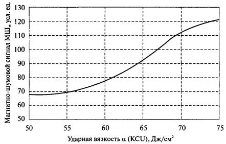 Рис. И.2. Зависимость ударной вязкости (KCU) от магнитно-шумового сигнала. Прибор «ПИОН-01» зав. № 12. Сталь 10