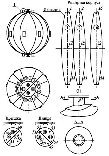6. ИСПЫТАНИЯ ШАРОВЫХ РЕЗЕРВУАРОВ НА ПРОЧНОСТЬ И ГЕРМЕТИЧНОСТЬ6.1. Проверка прочности и герметичности производится путем гидравлических испытаний оболочки шарового резервуара после проведения ремонтных работ по устранению обнаруженных дефектов и повреждений. 6.2. При проведении огневых работ во время ремонта по устранению дефектов и повреждений гидравлические испытания проводятся в обязательном порядке. 6.3. В случае ремонта шарового резервуара без проведения огневых работ гидравлические испытания допускается заменять пневматическими при обязательном условии контроля этого испытания методом акустической эмиссии (раздел 5.6.2). 6.4. Подготовка и проведение гидроиспытаний оболочки проводится в соответствии с требованиями ПБ 10-115-96 [7], ТУ 26-01-150-80 [1]. 6.5. Разность температур оболочки шарового резервуара и окружающего воздуха не должна вызывать конденсацию влаги на поверхности оболочки при гидроиспытаниях. 6.6. Максимальное пробное давление при гидроиспытаниях определяется в соответствии с действующей нормативно-технической документацией [7]. Время выдержки при пробном давлении должно быть не менее 10 мин. 6.7. После выдержки шарового резервуара при пробном давлении величину давления необходимо снизить до расчетного и произвести визуальный контроль наружной поверхности оболочки, сварных швов и разъемных соединений. 6.8. Шаровой резервуар считается выдержавшим гидроиспытания, если при этом не обнаружено следующих дефектов: падения давления; течи на основном металле, в сварных швах и разъемных соединениях; трещин или признаков разрывов; видимых остаточных деформаций элементов. 6.9. Результаты гидроиспытаний шарового резервуара оформляются в виде протокола, где указываются его характеристики (номер, емкость, продукт хранения, рабочее давление, марка стали и т.д.), максимальное давление при испытаниях, рабочая среда, результаты испытаний, заключение и фамилии специалистов, проводивших испытания. 7. ОЦЕНКА ТЕХНИЧЕСКОГО СОСТОЯНИЯ ШАРОВЫХ РЕЗЕРВУАРОВ7.1. По результатам полного технического обследования на основании полученных данных все выявленные дефекты и повреждения должны быть сопоставлены с требованиями действующей нормативно-технической документации и руководящих документов: ТУ 26-01-150-80 [1], ПБ10-115-96 [7], СНиП 3.03.01-87 [38], ОСТ 26-291-94 [39]. 7.2. При необходимости оценки однородности данных, полученных в результате полного технического обследования шарового резервуара, применяется статистическая обработка. 7.3. К недопустимым отклонениям относятся следующие дефекты и показатели: следы пропусков на основном металле и сварных швах наружной поверхности; коррозионное растрескивание в зонах концентрации напряжений (места приварки опор к подкладным листам и подкладных листов опор к оболочке, места приварки лепестков оболочки к сферическому нижнему и верхнему днищам, застойные зоны, места скопления влаги и коррозионных продуктов, места раздела фаз «газ - жидкость», места изменения направления потоков, зоны входных и выходных штуцеров); трещины всех видов в металле сварного шва; увод и смещение кромок на величину, превышающую требования ТУ 26-01-150-80 [1]; прочностные характеристики металла (временное сопротивление или условный предел текучести) отличаются от нормативных более чем на 5 % в меньшую сторону; отношение предела текучести к временн